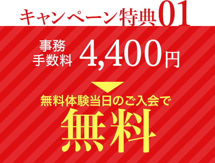 今なら無料体験当日のご入会で、入会金関連15,400円も無料とさせていただきます!
