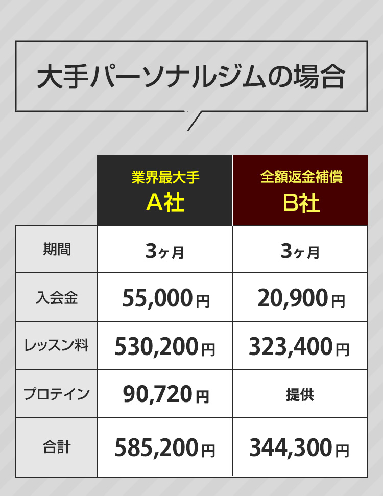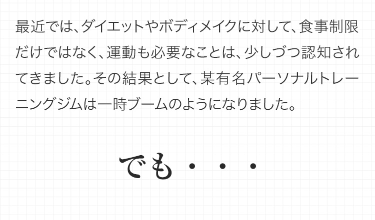 パーソナルトレーニングは非常に高額です。また、あまり知られていない事実ですが、多くの方がその後リバウンドをしています。