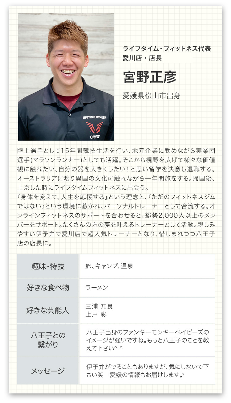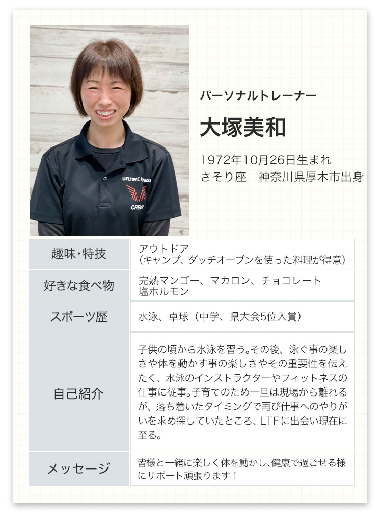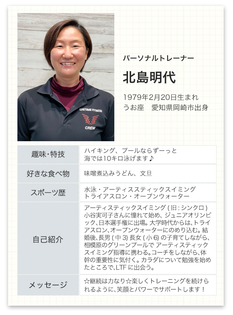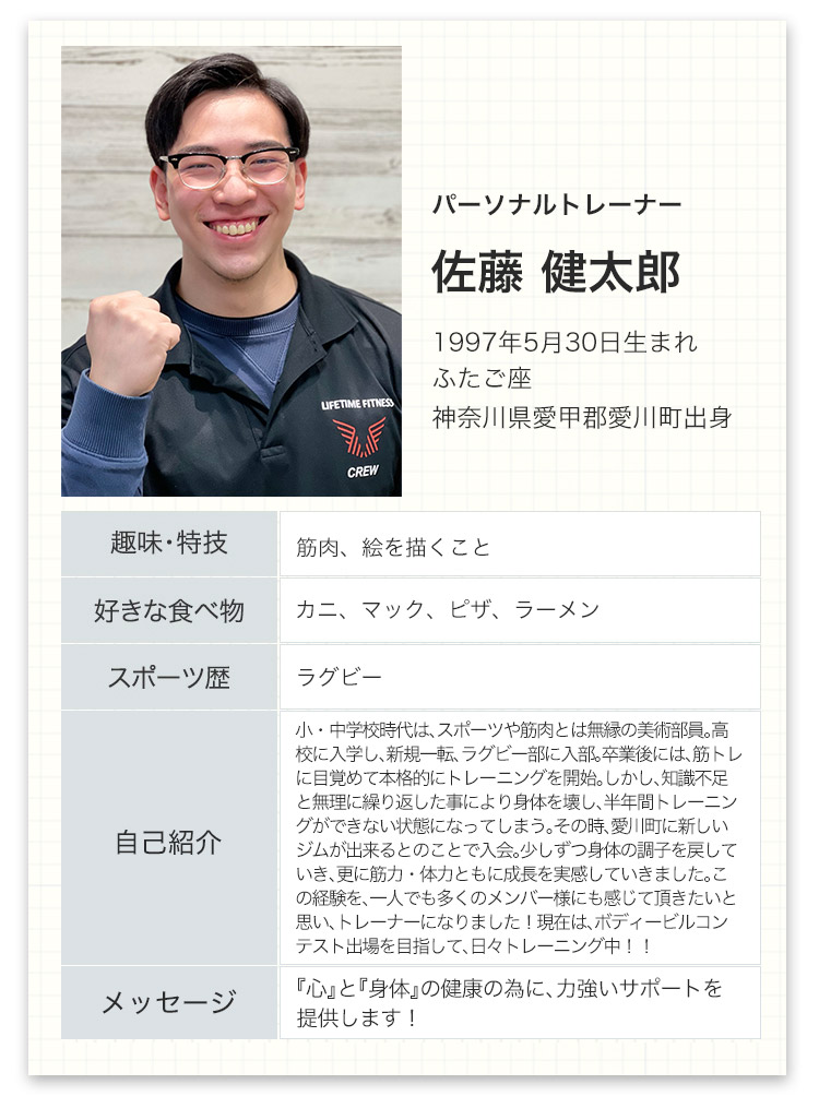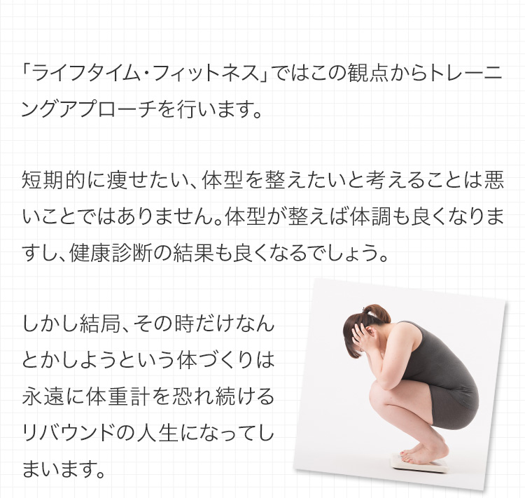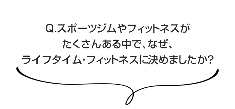 ライフタイムフィットネスはただのジムではありません。あなたの生涯のコンディショニング・パートナーです。体のこと、運動のこと、食事のこと、何でも聞いてください。