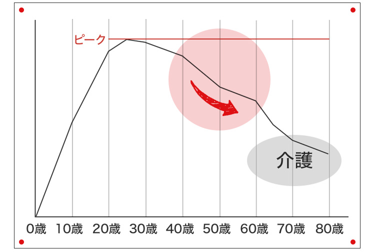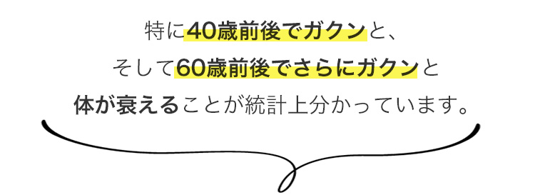 特に40歳前後でガクンと、そして60歳前後で