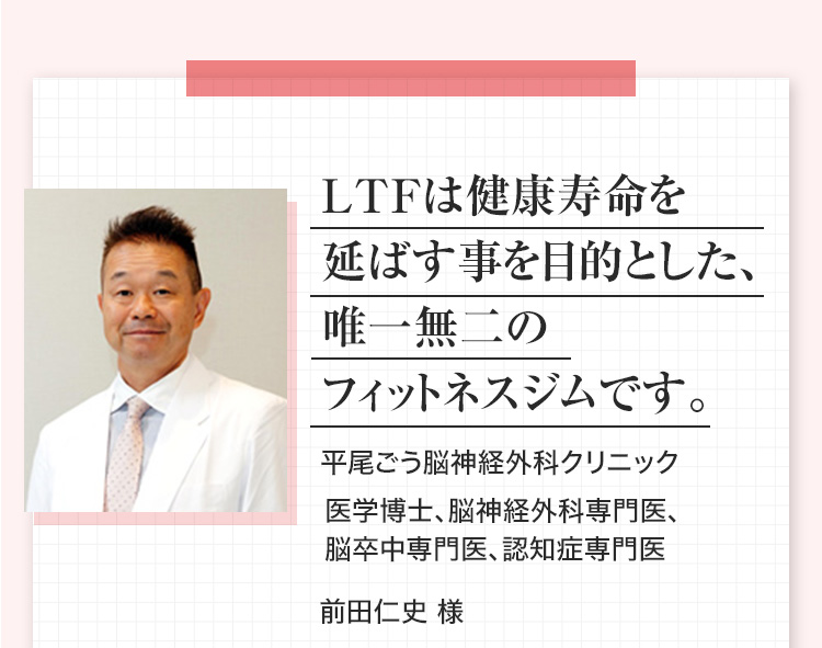 A:体に痛みがあると、何をやるにも不安が付きまといますよね。その痛みを改善するためにも、ぜひLTFにお越しください。痛みの根本的な改善には筋肉の柔軟性と強度が必要です。LTFでは子どもから高齢者まで使用可能な柔軟性向上に特化したマシンや、筋力向上を専門的に行える環境が整っています。病院に行っても改善しなかった痛みなども諦めずに、1度ご相談ください。