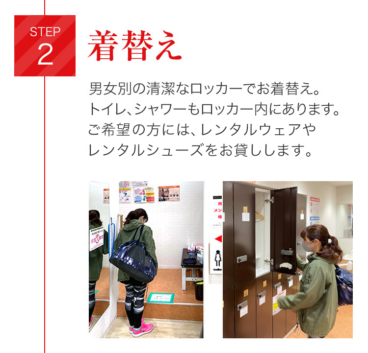 そして、男女別の更衣室、ロッカールームは完備し、男女別のトイレはもちろんシャワー室もご用意しています。
