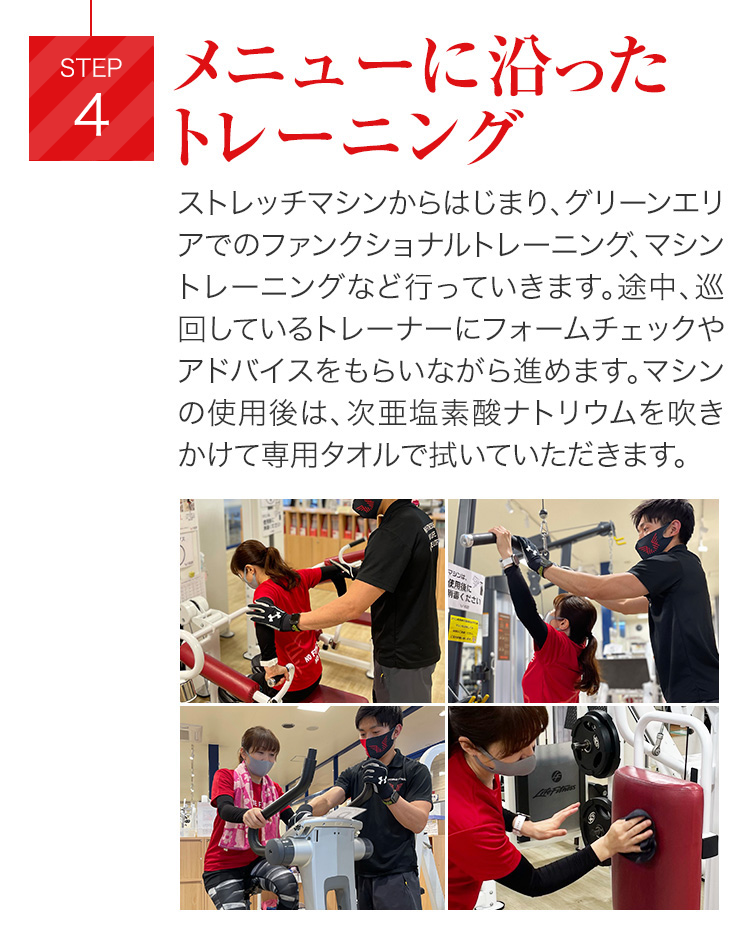 もちろん2回目以降も、トレーナーに聞きながら、進めていただけます。