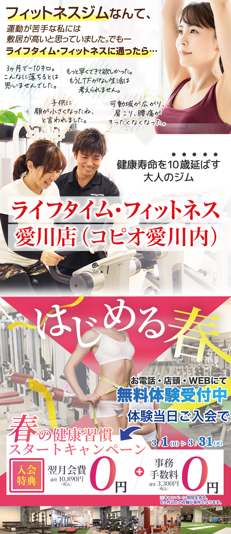 そして、私たちライフタイム・フィットネスは、 この2月から、2026年に向けて、運動を始めようと意気込んでいるあなたのために、愛川町の皆様への感謝も込めて、3月会費・手数料の合計14,190円が無料になる『2月限定・冬太り解消キャンペーン』を開催しております!