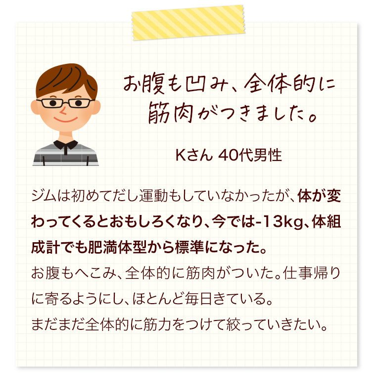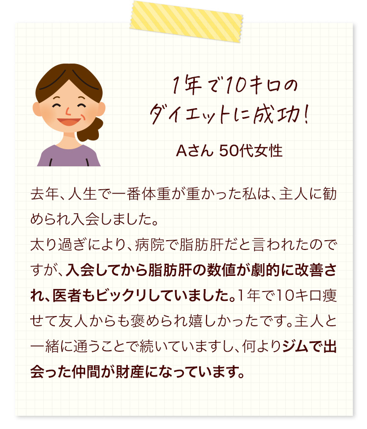 そして、メンバーさんも一緒に、正しい知識と正しい運動習慣を身につけていただくことで、心身ともに、健康になっていただいています。