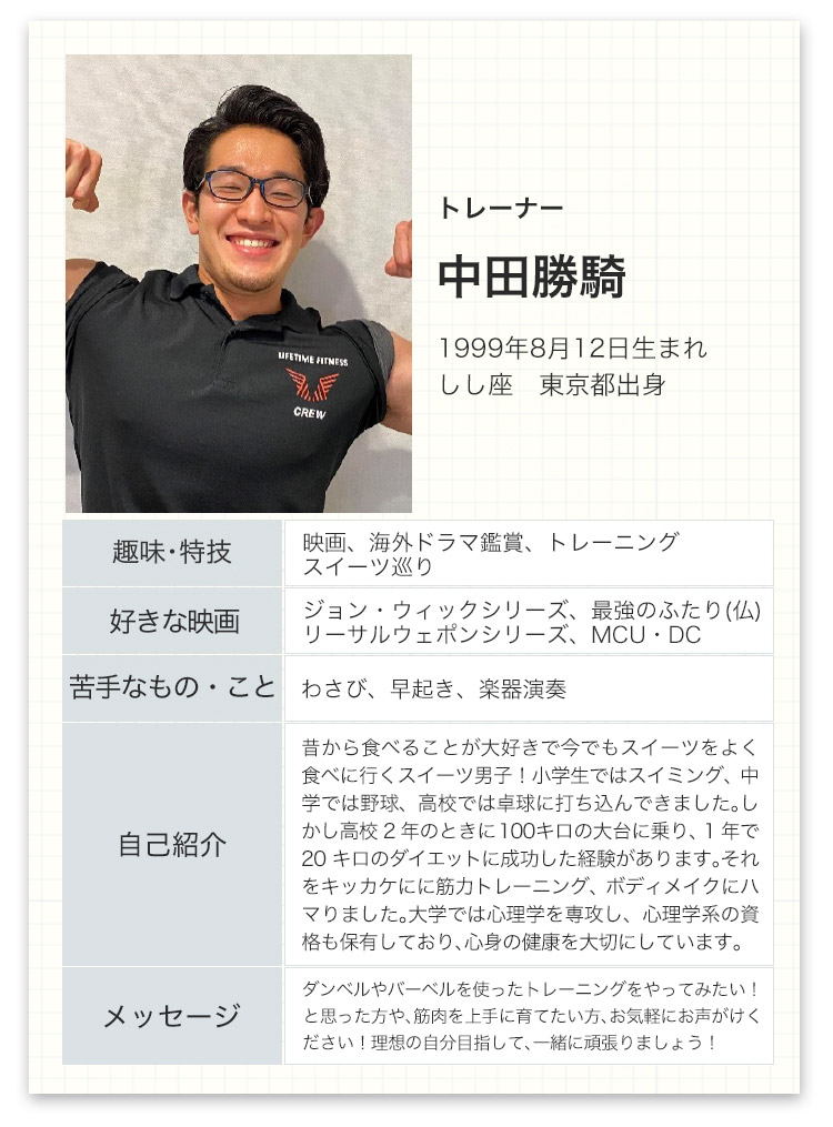 ライフタイムフィットネスはただのジムではありません。あなたの生涯のコンディショニング・パートナーです。体のこと、運動のこと、食事のこと、何でも聞いてください。